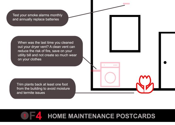 This quarter we’re looking at smoke alarms, cleaning dryer vents and trimming back vegetation that is too close to the house.
