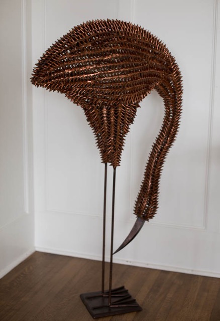 Well, I have made a recent purchase from this wonderful antique shop in town, Bernadette Breu. It is a pair of 4ft-tall flamingo sculptures. They are make of folded banana leaves and wire. They are painted copper and truly are a work of art. I pet them and visit them everyday! Pure joy!