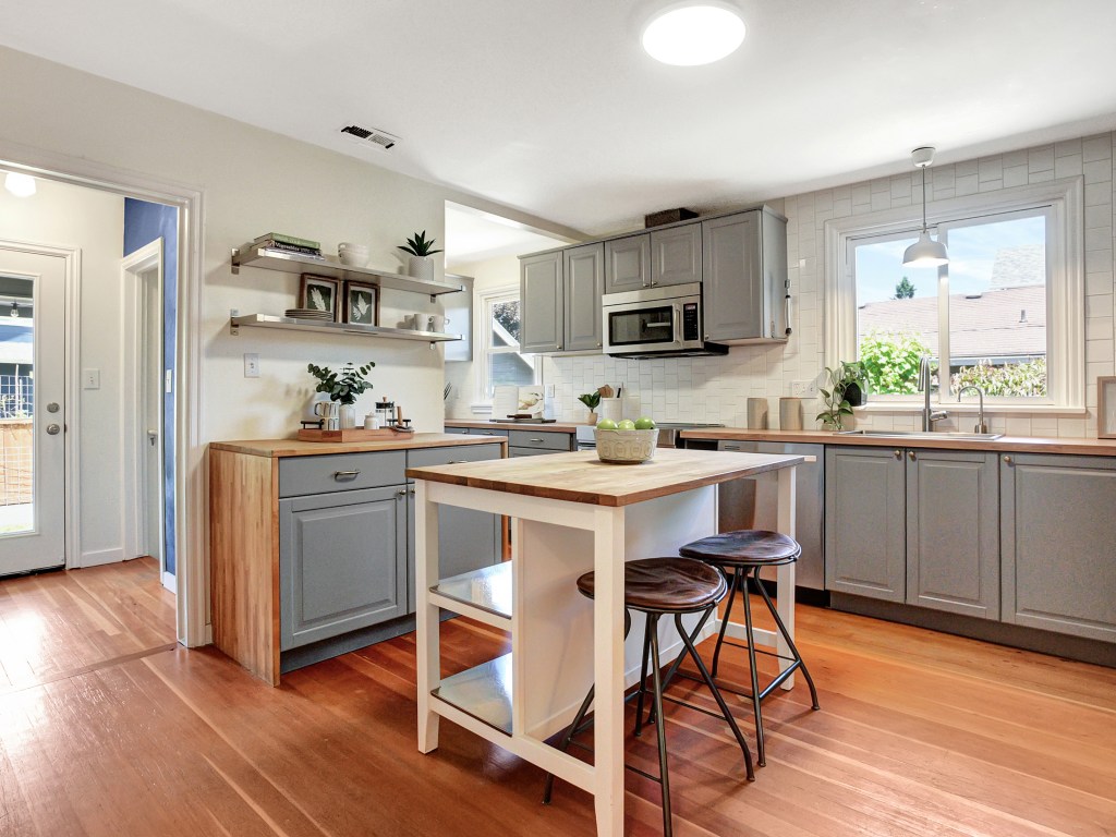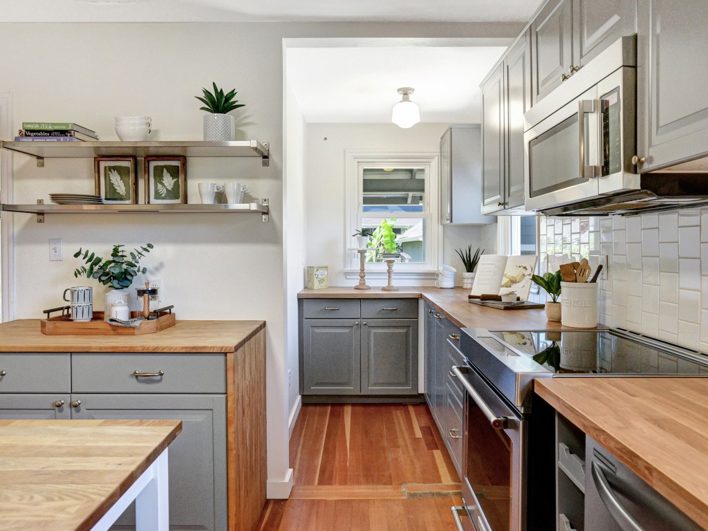 Fabulous light-filled NE bungalow, a stone’s throw from the Williams corridor and the Alberta Arts District. Bright and stylish, with a perfect blend of classic detail and thoughtful contemporary updates. Front and back porches, fabulous remodeled kitchen, two bedrooms and a bathroom on the main. Large open basement offers so many possibilities in addition to the bedroom, bathroom and laundry room. The separate entrance gives you ADU potential. Newer systems throughout. Wide driveway, lined by flower and veg raised beds and leading to a rare oversized double-garage with storage loft. Fenced backyard with private entertaining/BBQ space.